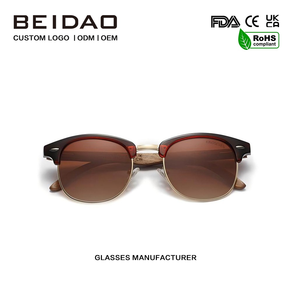 Drewniane okulary przeciwsłoneczne z polaryzacją w kolorze gradientowego brązu są wykonane z wysokiej jakości metalu i niełatwo je uszkodzić.